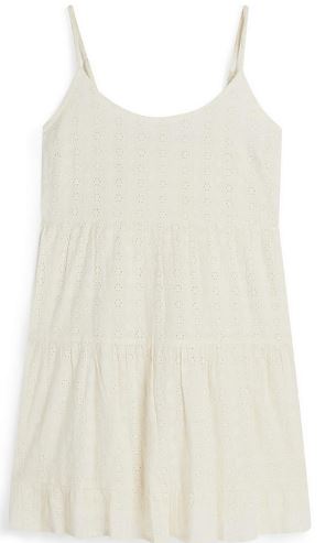 En esta oportunidad, te recomendamos este vestido corto de tirantes que viene con un espectacular diseño a capas. El color crudo se impone en esta vestido que funciona la perfección para cuando quieras estar cómoda, fresca y a la moda. Si de buenos precios hablamos, tienes que apuntar que tiene un valor de 16 euros.