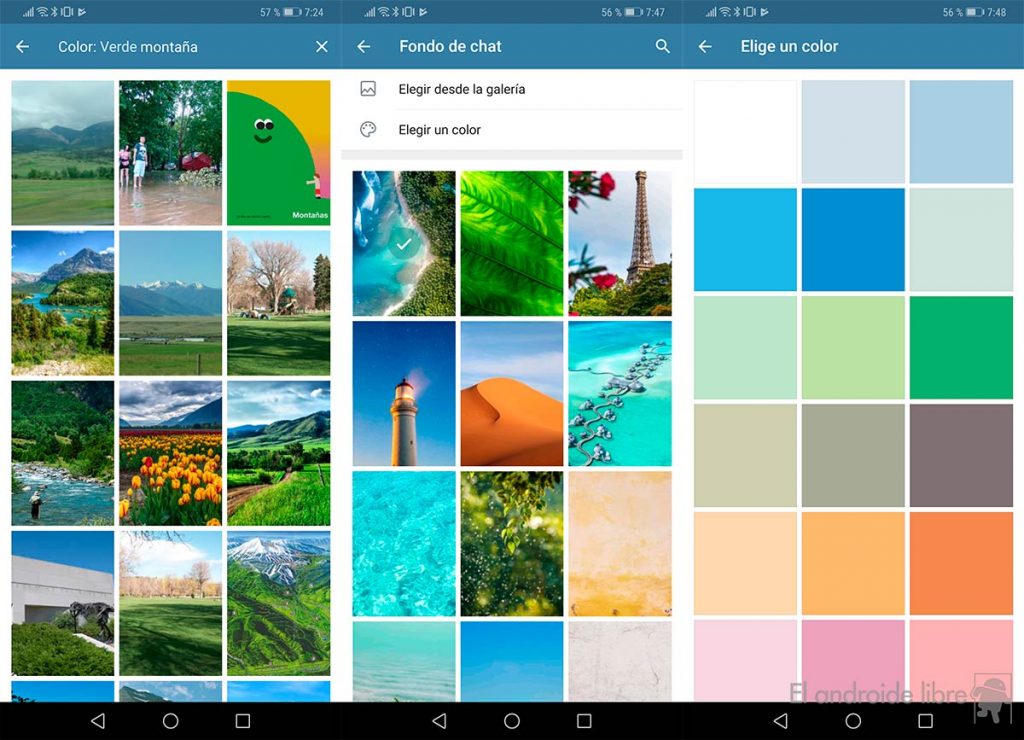 La aplicación oficial de Telegram te permite hacer de todo en cuanto a personalización. Por ejemplo te permite editar el tema por completo, cambiando los colores a tu antojo. Puedes cambiar tu foto, y esto es lo único que hace WhatsApp. También puedes elegir entre uno de esos fondos o colores sólidos para el fondo de los chats. La única opción de personalización adicional es poder cambiar al modo oscuro.