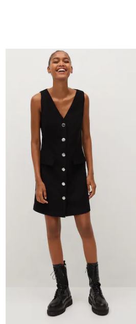 En Mango tienes la posibilidad de encontrar los mejores vestidos, y por supuesto que también los precios más accesibles con los que tus compras estarán más que aseguradas. Este atractivo de los precios es algo que no debes dejar pasar por alto. Es así, como te destacamos este pichi botones. Nos referimos a un diseño corto con escote de pico, y no trae mangas.