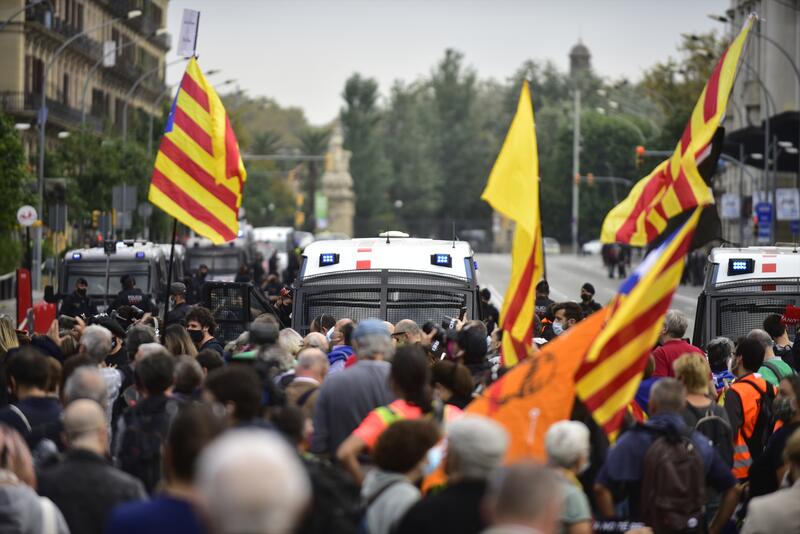 Los manifestantes están separados del edificio por un fuerte dispositivo policial, con decenas de furgonetas antidisturbios que han blindado la estación y han cerrado otras calles del Born.
