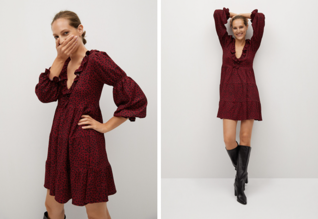 Uno de los vestidos que más nos gustan de Mango es este con el bonito detalle de la manga fruncida. Lo bueno, sin duda, es que es lo suficientemente corto para lucirlo con tus mejores botas esta nueva temporada.