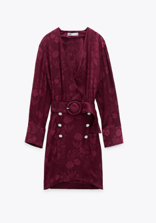 Si estás buscando un vestido de entretiempo un poco más especial, para salir de noche o para un evento formal, has llegado al sitio correcto. En Zara está rebajado este precioso vestido con estampado jacquard en un espectacular y elegante color morado.