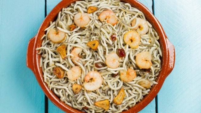 Hablamos de gulas para referirnos a un producto sucedáneo de las angulas, elaborado a partir de una mezcla de pescado con aceites vegetales, clara de huevo, proteína de soja y especias. Obviamente, las gulas son más baratas que las angulas, y es por eso que su consumo es más elevado. Sin embargo, aunque obviamente el sabor no es el mismo, ni su valor nutricional, con las gulas podemos elaborar recetas riquísimas, que no se quedan cortas respecto al buen gusto de la angulas. Hoy te recomendamos esta receta de gula con gambas.