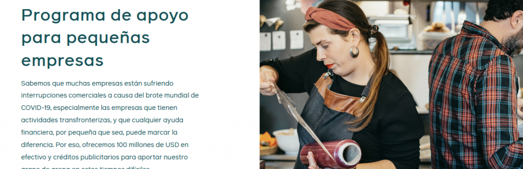 Sabemos que muchas empresas están sufriendo interrupciones comerciales a causa del brote mundial de COVID-19, especialmente las empresas que tienen actividades transfronterizas. Por este motivo, cualquier ayuda financiera, por pequeña que sea, puede marcar la diferencia.