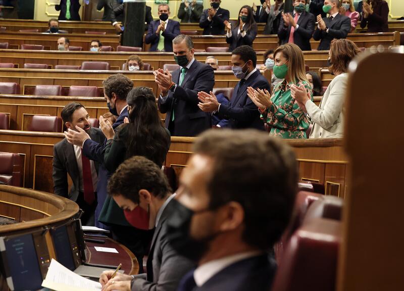 El presidente de Vox ha finalizado su discurso asegurado que, pese al «gigantesco error» que, a su juicio, ha cometido Casado desde la tribuna, su partido lo tratará de «corregir» tendiendo la mano a los votantes del Partido Popular.