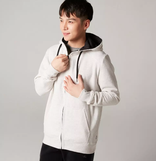 Esta confortable chaqueta pertenece a la colección Domyos de Decatlón y está diseñada para mantener el calor corporal antes, durante y después de una sesión de gimnasia stretching, yoga o pilates o cualquier ejercicio de tonificación suave o refuerzo muscular de intensidad baja a fuerte. Esta prenda aporta un equilibrio perfecto entre transpirabilidad y comodidad. El tejido es extensible por lo que se adapta perfectamente al cuerpo y sus movimientos, además destaca por su suavidad. Tiene un diseño de cuello alto con capucha, y se cierra en la parte frontal con una cremallera. Lleva bolsillos laterales para las manos. Está disponible en color beige con detalles en negro, por un precio de 19,99 €.