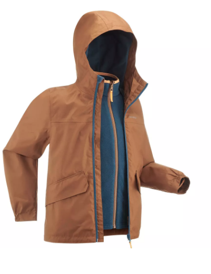 Otro abrigo 3 en 1 de Decathlon, esta vez para niños de entre 7 y 15 años, perfecta para el senderismo o para el día a día. Es desmontable y la parte interior es una chaqueta de forro polar y la de fuera una chaqueta impermeable con capucha. De esta manera se puede regular el aporte de calor según el clima o la actividad que se vaya a realizar. Tiene un bolsillo interior y bolsillos exteriores de solapas para las manos. En el cuello dispone de una etiqueta para poner el nombre del niño, e incorporar una capucha envolvente y ajustable. Esta prenda de Decathlon tiene una garantía de dos años y cuesta 37,99 €.