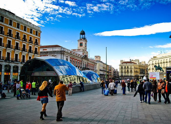 La Puerta del Sol es la plaza más conocida de Madrid, en la cual se encuentra desde el año 1950 el llamado Kilómetro Cero de las carreteras radiales de España. Cada año es el lugar desde el cual las principales cadenas de televisión del país emiten las tradicionales campanadas de Navidad.