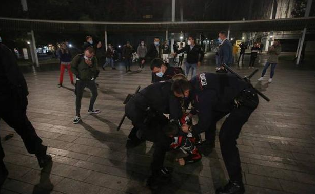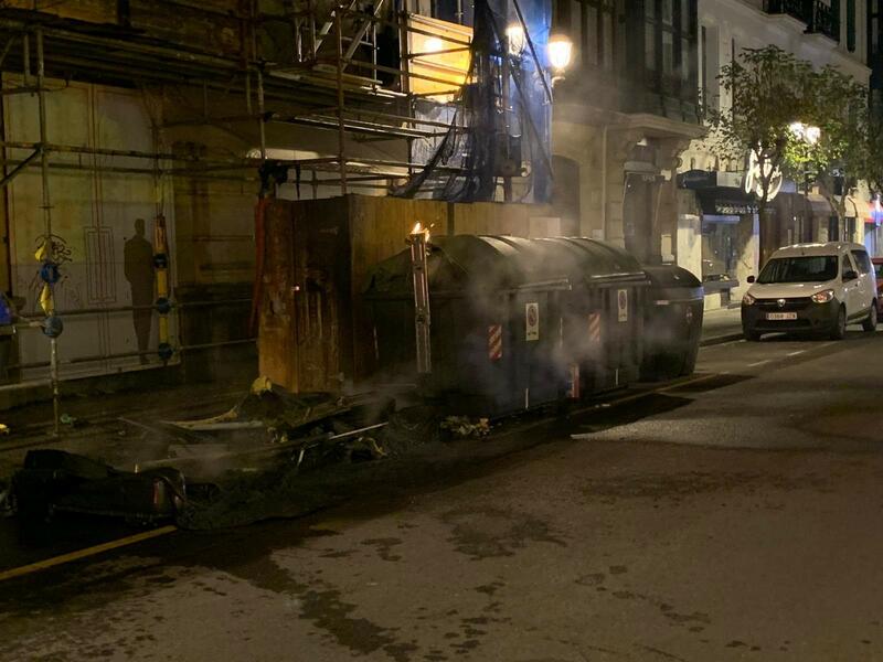 Seis personas han sido detenidas tras unos incidentes en el centro de Bilbao, con la que quema de más de una veintena de contenedores, registrados tras una concentración de protesta por el toque de quema implantado en el País Vasco para controlar la expansión del coronavirus.