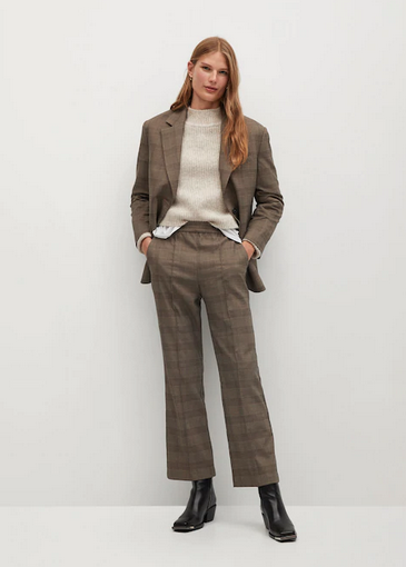 El pantalón de cuadros es esa prenda que viene y va constantemente. Si tienes uno, puede que dejes de utilizarlo un par de años porque se han pasado de moda, pero no hay que tirarlo, porque al cabo de poco se vuelven a llevar. De hecho es un estampado atemporal si sabes elegir un tipo de cuadro discreto y elegante. Como este pantalón de traje de cuadros con un diseño ligeramente informal. Es de pierna recta, tiro medio y cómoda cintura elástica, y con cómodos bolsillos laterales. Puedes ponértelo con una blazer a juego, o con un jersey de punto, si quieres un estilismo más desenfadado. Además, pertenece a la colección Committed que utiliza tejidos o procesos de producción sostenible para reducir el impacto ambiental. Está fabricado con 68% poliéster, 30% viscosa y 2% elastano. El precio es de 29,99 €.