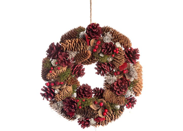 Y terminamos este repaso por los productos navideños de Leroy Merlín con esta fantástica corona formada por piñas marrones, ramas en color verde y bayas rojas para poner en tu puerta. Es de estilo nórdico y rústico y con ella le darás a la puerta de tu casa un estilo navideño acogedor y cálido durante estas fiestas. Toda una declaración de intenciones.