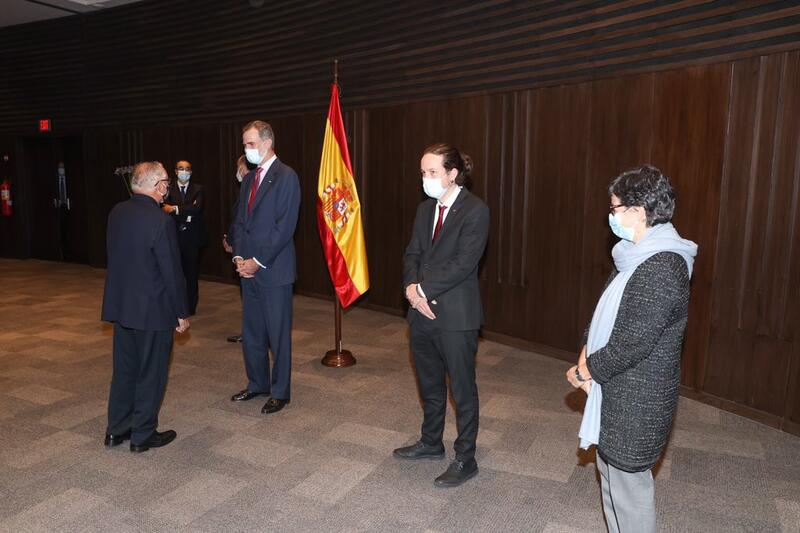 Iglesias acompañó al Rey en todas sus reuniones, igual que la ministra de Exteriores, pero también se reunió con el candidato ‘correísta’ en las próximas elecciones en Ecuador, Andrés Arauz y con la peruana Verónica Mendoza. Y, junto al expresidente José Luis Rodríguez Zapatero, impulsó una «Declaración de La Paz» en la que se afirma que «la principal amenaza a la democracia y la paz social en el siglo XXI es el golpismo de la ultraderecha».