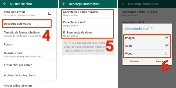 Aunque Whatsapp sea servicio de mensajería instantánea por excelencia, descarga por defecto en tu ´smartphone´ todos los archivos que recibas, a no ser que le índices lo contrario. Para desactivar esta opción, entra en Ajustes > Chats y llamadas > Descarga automática y desactiva en modo WiFi como en modo datos móviles este tipo de descargas de tu almacenamiento.