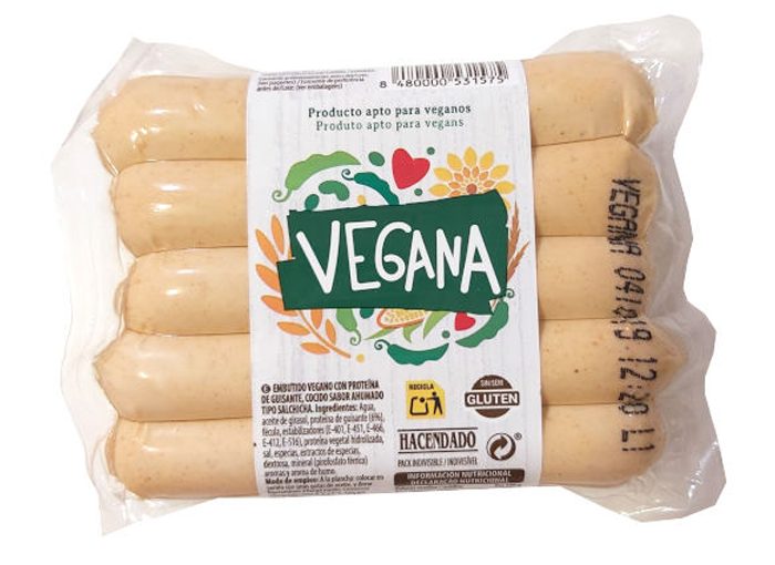 Los veganos están de enhorabuena con las salchichas veganas de Hacendado, siendo consideras las mejores de marca blanca que se pueden encontrar en el mercado. Están elaboradas a base de proteínas de guisante y aceite de girasol y también son aptas para celíacos.