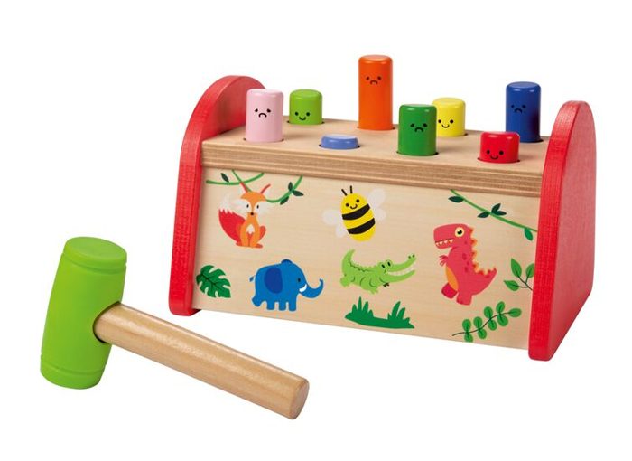 También cabe destacar el banco para golpear fabricado en madera natural y compuesto por 8 clavos de madera y un martillo. Está pensando para estimular la motricidad fina, la coordinación óculo-manual y el pensamiento lógico. Su precio es de 9,99 euros.