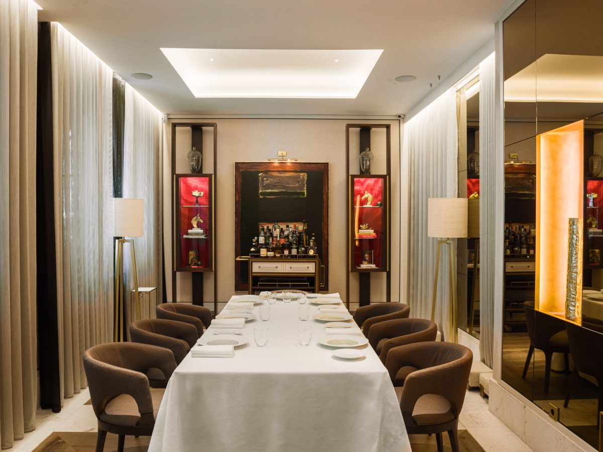 Por todos es sabido que la mayoría de los tratos se sellan no en el despacho, sino en torno a un buen plato de comida y que salones como los de Jockey, Horcher y Zalacaín han sido testigos de muchas de las grandes decisiones económicas y políticas que se han tomado en España en el último medio siglo. En la actualidad, recién desaparecido el que fuera el primer tres ellas de la capital, Zalacaín, Horcher (Alfonso XII, 6. 91 522 07 31) continúa siendo una de las grandes mesas de poder en Madrid. Inmutable al paso del tiempo, ofrece una exquisita cocina entroeuropea, un servicio impecable y tres reservados con distintas capacidades: El Salón, La Recepción y Downstairs, escenario este último, de los saraos privados de personalidades como Dalí, Charlie Chaplin, John Wayne o el omnipresente Ernest Hemingway. Por su parte, Saddle (Amador de los Ríos, 6, 91 216 39 36), inaugurado hace un año en el mismo local que ocupó Jockey hasta 2012 y con muchos guiños a su predecesor, cuenta con seis privados tanto para grupos como para parejas –hay un privado de dos– que quieran disfrutar en absoluta intimidad de una experiencia gastro de puro lujo.