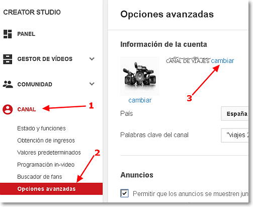 Si un día compruebas que te has confundido, y que diste un nombre incorrecto al canal de Youtube, también tienes la posibilidad de cambiar el nombre. Esto viene bien por si quieres mantener más privacidad en tu cuenta o si de repente tu empresa ha cambiado de marca. Es muy sencillo. Haz clic en tu avatar de YouTube, en la esquina superior derecha del panel, y luego en el icono de configuración, junto a «Estudio de creación».