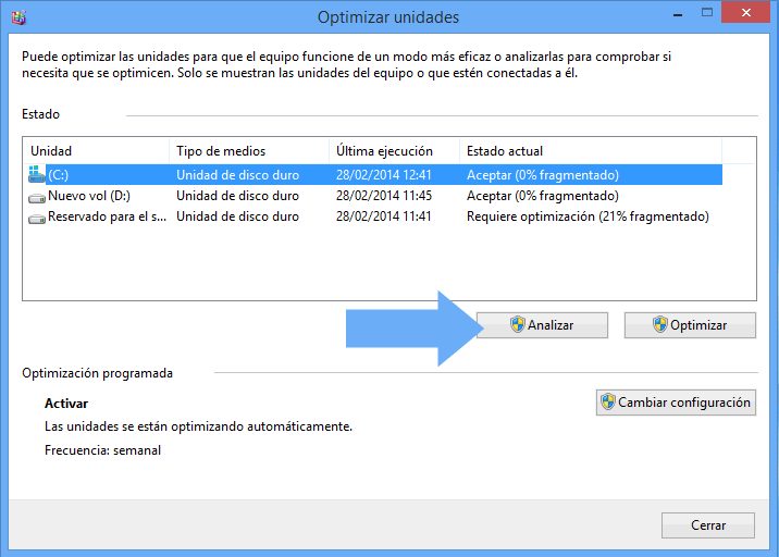 El anterior consejo ha sido muy de andar por casa, ahora lo que hacemos es ponernos el mono de taller y mancharnos las manos. Lo que vamos a hacer es desfragmentar el disco duro y optimizar las operaciones de lectura. Estos procesos separan los bloques contiguos entre sí, lo que reduce la velocidad de lectura. Por eso, es buena idea la de comprar un disco duro externo.