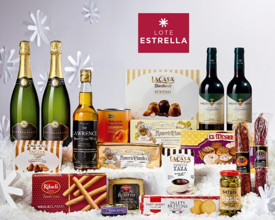 Como comentábamos es importante y útil ir a lotes con la etiqueta «Lote Estrella» para conseguir una variedad de más calidad y al mejor precio. Tienes varias pero seguimos indicándote las de mejor precio. En este caso son 39 euros pero es más extensa y de mayor calidad que la anterior. Sin duda en calidad-precio es una de las mejores opciones de El Corte Inglés en cestas de Navidad.