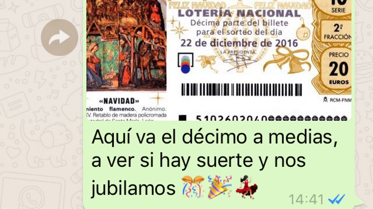 La otra persona, o las otras personas del grupo de WhatsApp, tienen que poner que lo han recibido. Y que están conformes con lo que te han mandado. Eso será como si fuera una firma de las de hace años. En este caso, el mundo se moderniza y la Lotería de Navidad también. ¿has hecho alguna vez esto? Si lo haces, no tendrás problemas.