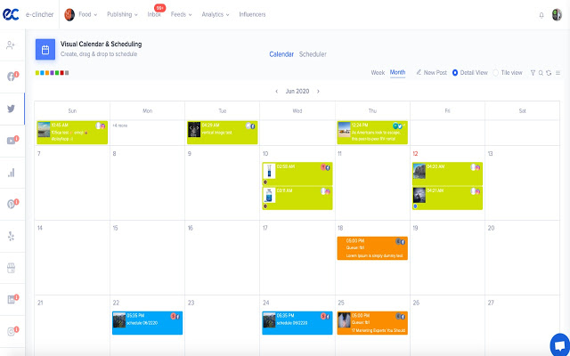 Para los CM que no quieren dejar nada a la improvisación y amen el orden, nació eClincher. Una potente herramienta de programación de redes sociales que funciona con Facebook, Twitter, Instagram, LinkedIn y otras plataformas importantes de redes sociales. Entre sus principales características se encuentran las de obtener un calendario de contenido para Horario de mensajes semanas o meses de anticipación.