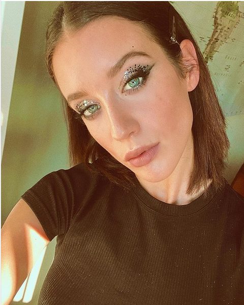 Para replicar el maquillaje de ojos de María Pedraza hay que delinear el párpado utilizando un eye-liner de color negro intenso. Con pincel, con aplicador o utilizando el formato que mejor se te dé y con el que tengas más maña. Después, con un pincel fino y sombra negra, marcamos el delineado creando un efecto cat-eye bien pronunciado hacia la sien. A continuación la actriz ha difuminado sobra de ojos plateada en el resto del párpado y en la parte inferior creando un efecto smoky eye muy brillante. El look finaliza con unos detalles de purpurina plateada y, por supuesto una máscara de pestañas bien negra.