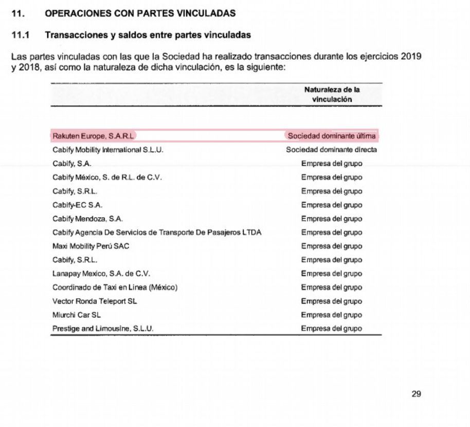 En el artículo original de MERCA2 se refieren a Rakuten con el “término sociedad dominante”. Algo que no ha gustado en Cabify. Esta es la sociedad que ha apoyado a esta compañía tan sólida. Así el comunicado reza indignado: «Rakuten es accionista del grupo y beneficiario último, pero no la sociedad ‘dominante'». Pero a continuación, adjuntamos la página 71 de las referidas cuentas del 2019 (en la 56 del 2018, si se prefiere) aparece escrito: «Rakuten Europe SARL sociedad dominante última». Ya que nosotros si hemos tenido la santa paciencia de analizar los cerca de 100 folios del informe, y ya que los responsables de empresa parecían desconocerlo les facilitamos la información con objeto que no hagan más el ridículo negando obviedades, escritas negro sobre blanco en sus propias cuentas.