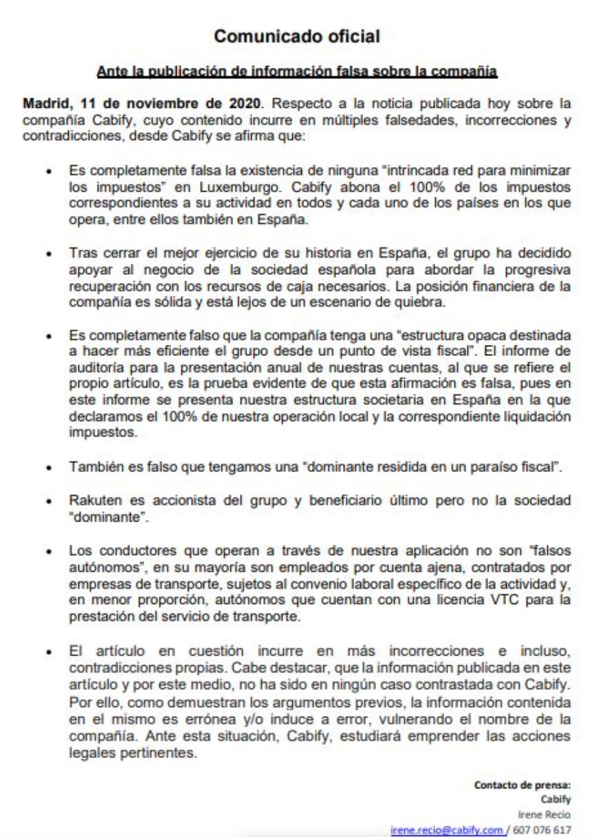 Primero analizan la frase que empleo la empresa para decir que pagaban lo que tenían que pagar. «Cabify abona el 100% de los impuestos correspondientes a su actividad», decían. Y MERCA2 lo aclara: «Con ese eufemismo quieren indicar que pagan la seguridad social de sus empleados y el IVA. Cómo hacemos todos los contribuyentes en España. Vamos, ¡sólo faltaba! Otra cosa es como buscan beneficios fiscales en el impuesto de sociedades. Basta decir que la empresa paga más impuestos por este concepto en Latinoamérica que en España».