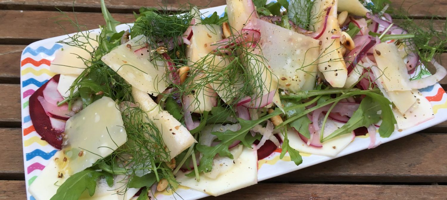 5ENSALADA DE HINOJO, QUESO DE CABRA Y PERA ROCHA