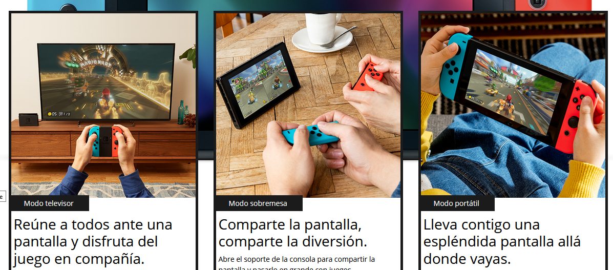 Los juegos para esta consola y otras aplicaciones están disponibles como cartuchos físicos ROM de flash y como distribución digital, y no utilizan bloqueo de región. La Switch compite en el mercado de las videoconsolas con sus contemporáneas PlayStation 4 de Sony y Xbox One de Microsoft. Pero sin duda, es una de las mejores del mercado porque ha sabido conectar con los nuevos tiempos.