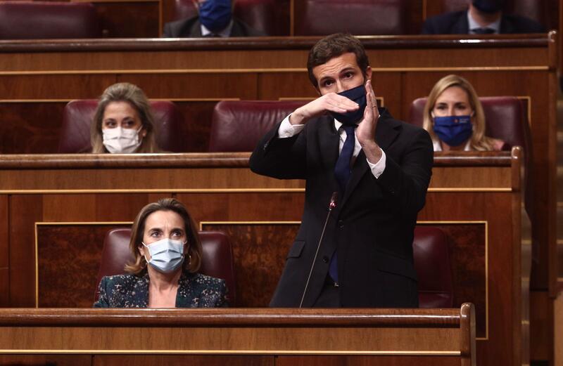 Casado ha denunciado que el vicepresidente segundo del Gobierno, Pablo Iglesias, y varios ministros de Podemos se dediquen a «atacar abiertamente a la Monarquía» y que también los socios nacionalistas e independentistas del Ejecutivo «arremetan contra Felipe VI».