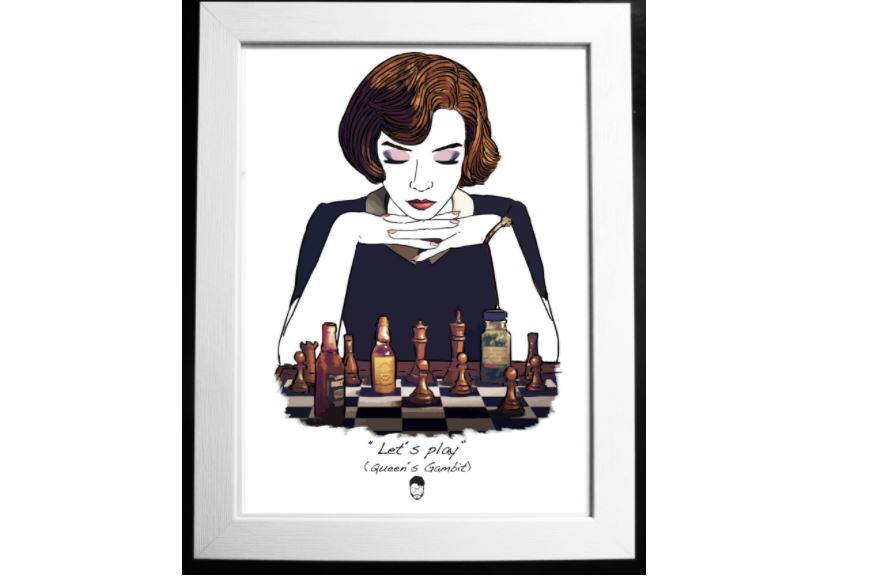 Hemos mencionado antes a de `The Mandalorian´, la serie de Disney Plus inspirada en la saga `Star Wars´. Pero otra serie que ha sido todo un éxito en este 2020 ha sido Gambito de Dama. Para ese amigo o amiga que nunca en su vida supo diferenciar un peón de un alfil pero cuando vio esta serie de Netflix se ha convertido en el aficionado número 1 del ajedrez. Esta lámina de la producción que protagoniza la joven Anya Taylor-Joy cuesta 10 euros en tamaño A5 y 20 euros en A3 en El Loco del Pelo Rizo. Cualquier fanático de Gambito de Dama debe tenerla colgando en su dormitorio. De esos regalos que no se olvidan.