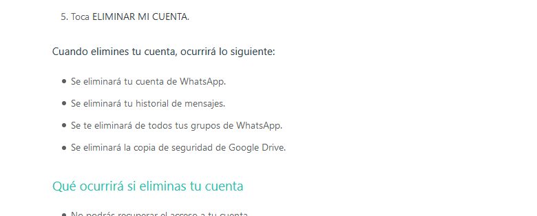 Una vez que lo hayas hecho, tienes que saber las consecuencias. Lo primero es que no podrás recuperar el acceso a tu cuenta. Según dicen en su página web, es posible que transcurran 90 días desde el inicio del proceso de eliminación para que se borre tu información de WhatsApp.