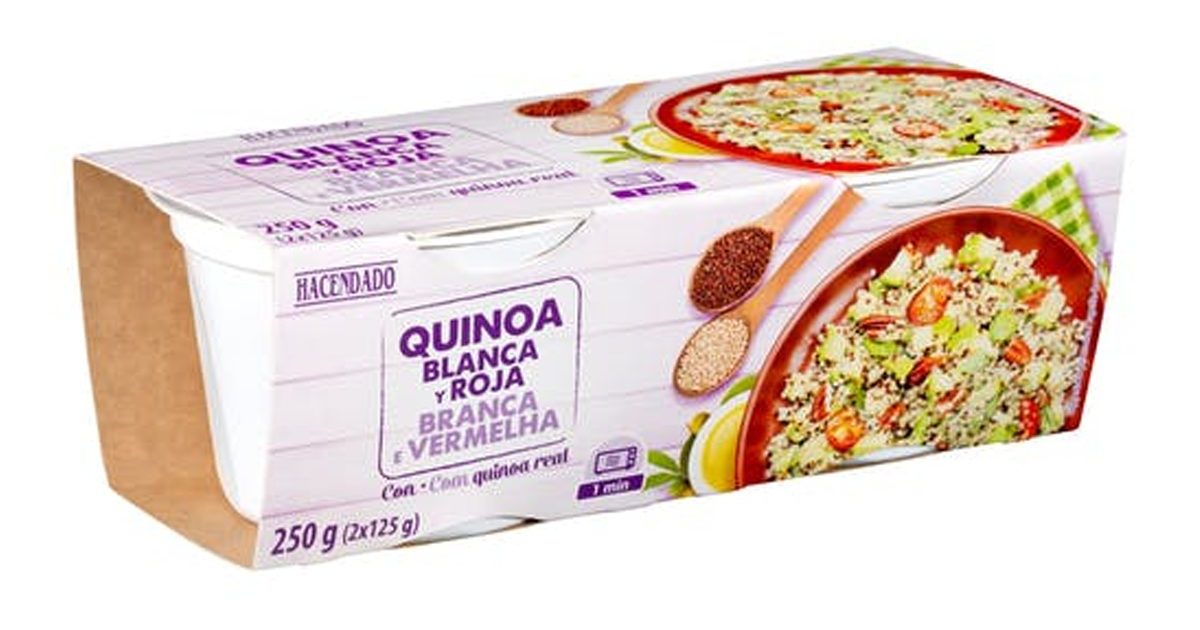 La quinoa cocida blanca y roja de Hacendado es una gran opción, ya que no contiene gluten, es apta para celíacos; y tiene numerosas propiedades beneficiosas para el organismo. En este producto de marca blanca de Mercadona se comercializa en vasitos que se calientan durante un minuto en el microondas y están listos para comer.