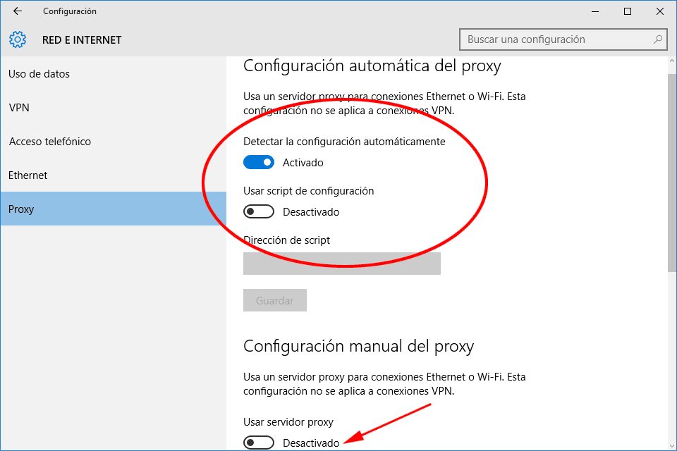 5Cambiar el servidor Proxy