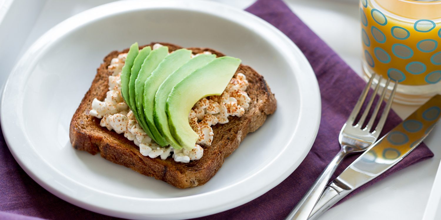 El aguacate es una fruta que, aparte de ser deliciosa, proporciona enormes beneficios a nuestra salud. Es antioxidante, reduce el colesterol, colabora con el buen funcionamiento del sistema cardiovascular y ayuda a perder peso. Además es rico en ácido fólico, sustancia que fortalece los tejidos. Y si al aguate le sumamos otros ingredientes sanos como pan integral o queso fresco desnatado obtenemos como resultado un desayuno soberbio.