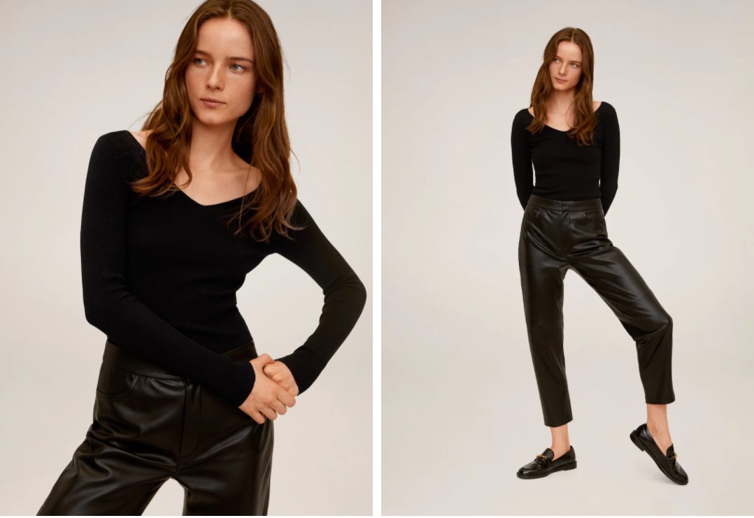 Otro de los jerséis finos que hemos encontrado en Mango y que ya se ha convertido en un básico para tener en cualquier armario, es este en un potente color negro. Su cuello en pico le aporta ese detalle especial, pues realzará el busto y la figura.