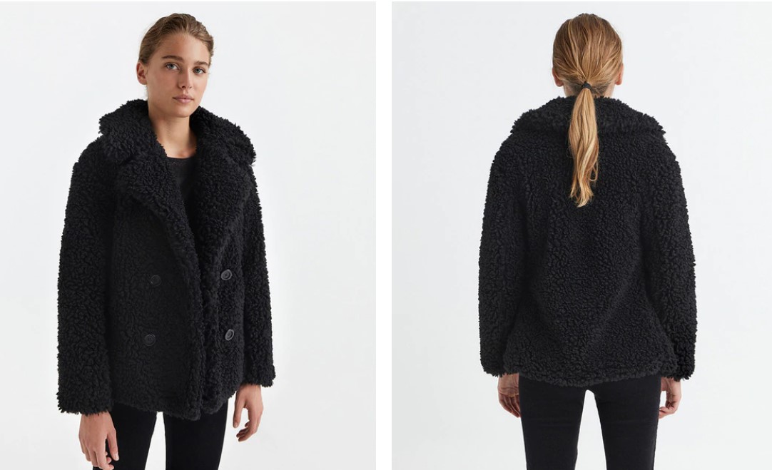 En El Corte Inglés encontramos algunas opciones muy fáciles de combinar a precios estupendos. Un claro ejemplo de ello lo tenemos en esta chaqueta de pelo, de la marca Sfera, muy similar a la lana de oveja, que podremos adquirir en color negro y nos servirá tanto para el día como para la noche.