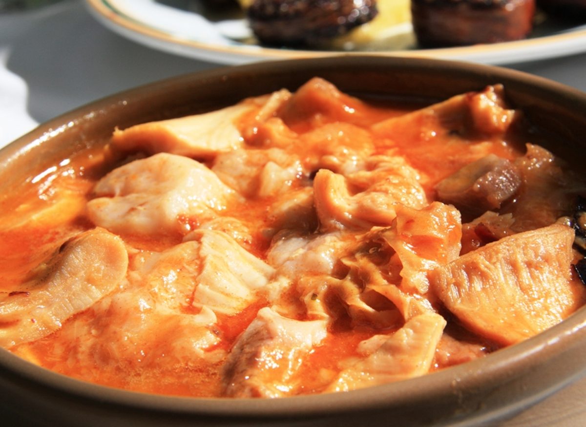 Es un plato que aúna pedazos del estómago de ternera, cerdo o carnero que se comen guisados y que habitualmente se sirve caliente en una cacerola de barro acompañado de embutidos como chorizo y morcilla.