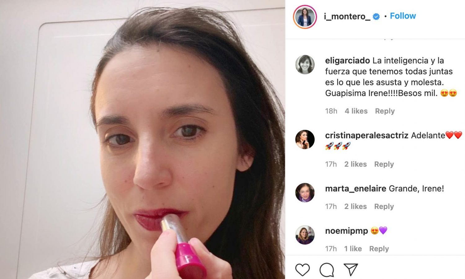 Montero, como siempre, se ha lanzado en plancha a apoyar a la eurodiputada con la bandera feminista en un momento en el que España está azotada por la tercera ola y con un nivel de contagios disparado. Mientras todos hablan de las vacunas y de cómo gestionar este momento de la pandemia, Irene Montero se hace fotos pintándose los labios de rojo para resaltar su apoyo a una eurodiputada que ha sido ofendida por un misógino. Sin embargo, esta falta de tacto a la hora de saber qué momento es el más apropiado para publicar estas fotos le ha traído miles de comentarios en las redes sociales que no querrá ver.