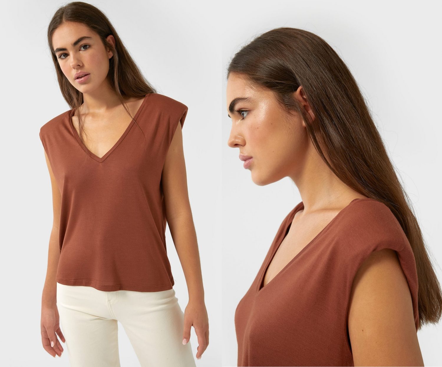 Aunque tuvieron su gran auge hace varias décadas, siempre vuelven a ser protagonistas tanto en chaquetas como ahora, en las camisetas de Stradivarius. Con escote a pico, podrás combinarla con tus pantalones vaqueros y hacer un look sencillo o bien, con pantalones de tela, o faldas lápiz y apostar por un toque semi-formal. ¿Cuál es tu mejor estilo?