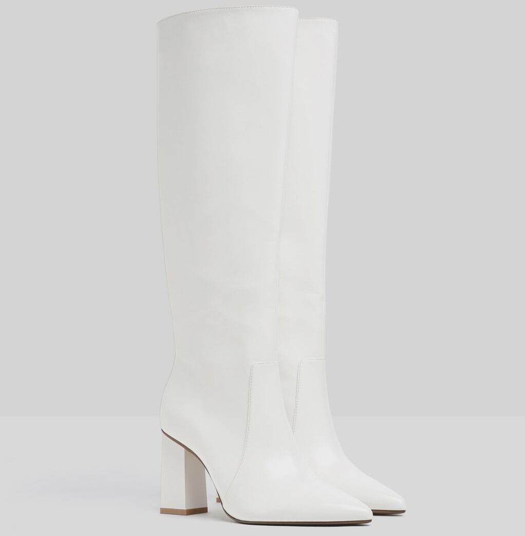 3Botas altas en color blanco y con tacón geométrico de Bershka