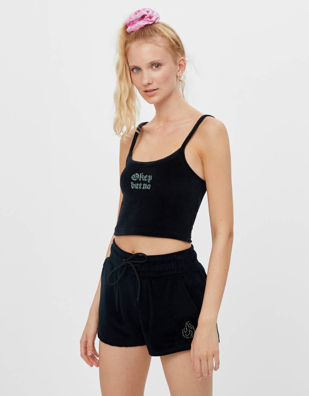 Algo similar sucede con este conjunto de terciopelo. Una de las prendas que más nos gustan es el short, ya que nos servirá tanto para dormir o estar en casa como para hacer deporte relajado.