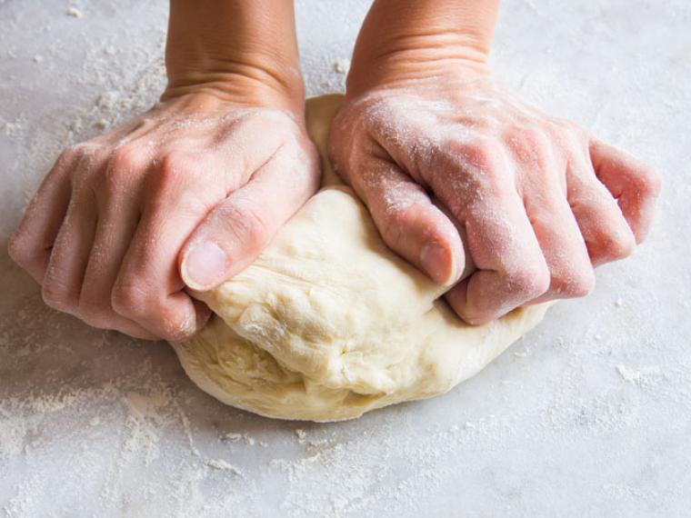 Comienza a amasar dentro del bol hasta que estén todos los productos bien integrados entre sí. Una vez que no puedas más pasa el bollo a la encimera y continúa amasando. Es muy importante que no quede pegajosa. Así que ten paciencia suficiente. Al ver el resultado final de esta empanada de Nutella te darás cuenta que merece la pena. Echa harina en tus manos si es necesario. Para mucha gente amasar es muy relajante.