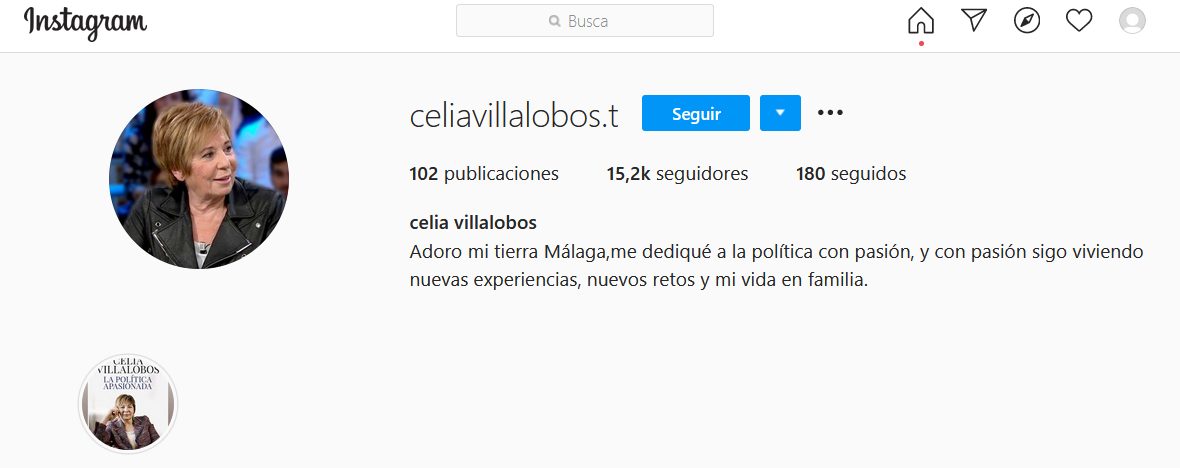Y así es como nació la Celia Villalobos influencer. La malagueña ha dejado de intentar influenciar a los ciudadanos en su voto para hacerlo ahora con sus Likes. Y parece que de momento le va muy bien. Tiene más de 15.000 seguidores gracias a sus 102 publicaciones, a día de hoy.