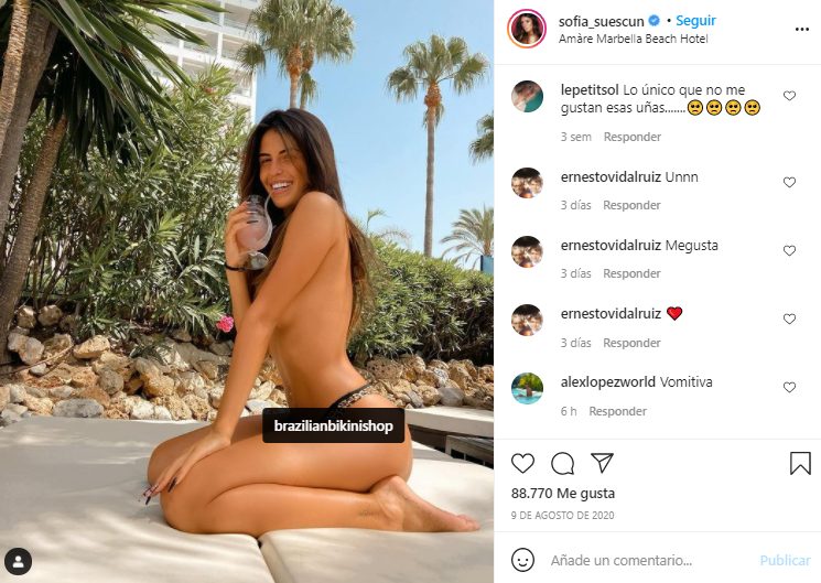 Sofia Suescun se ha convertido en toda una influencer y una colaboradora habitual de Telecinco. Aquel programa que no cuenta con ella en algún momento, recibe furibundas críticas de los seguidores de la televisiva. Su gran secreto, sin embargo, no reside en lo que aporta a los programas sino en el físico. Y eso a pesar de que cuentas como @bellezafalsa la han señalado públicamente por ‘pasarse’ con el retoque fotográfico y la edición en su canal de Instagram, que es donde más desnudos y poses sugerentes publica Sofía Suescun. Ella misma ha reconocido en numerosas ocasiones que le gusta ser exhibicionista. Además, cada vez que publica un desnudo o una foto muy sugerente, se convierte en noticia.