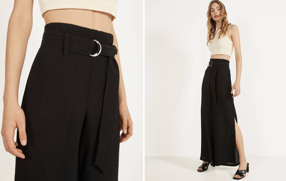Los pitillos parecen haber quedado atrás y ya han sido reemplazados por otro tipo de pantalones aptos para todo tipo de cuerpos. En este caso, uno de los que más nos han gustado de Bershka es este, estilo wide leg y con cinturón.