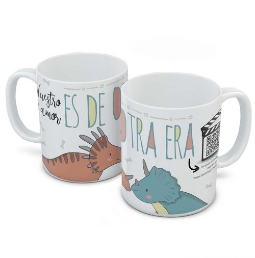 ¿Buscas un regalo económico, gracioso, original y sorprendente? Pues ahora en Carrefour tienes este juego de tazas que dejará boquiabierta a tu pareja. Se trata una graciosa taza con un diseño de dinosaurios y la frase ‘Amor de otra era’, pero son mucho más que eso, porque llevan impreso un QR donde se puede incluir o bien 10 fotos, o bien un vídeo de 20 segundos. La elección del material depende de ti. Solamente hay que descargar la aplicación cardmagicQR y el sistema te llevará al contenido guardado. El precio es de 12,95 €.