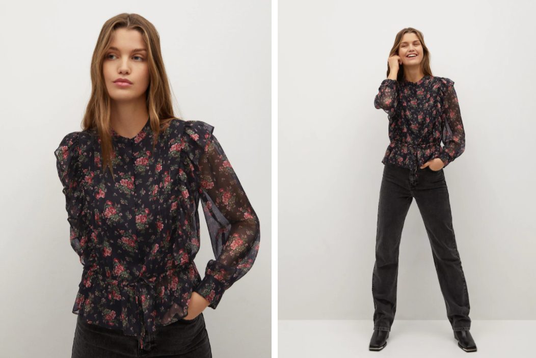 Los motivos florales nos empiezan a llamar la atención conforme el buen tiempo empieza a aproximarse. Además, otro de los detalles que nos encantan de esta preciosa blusa de Mango es que cuenta con unos atractivos volantes delanteros.