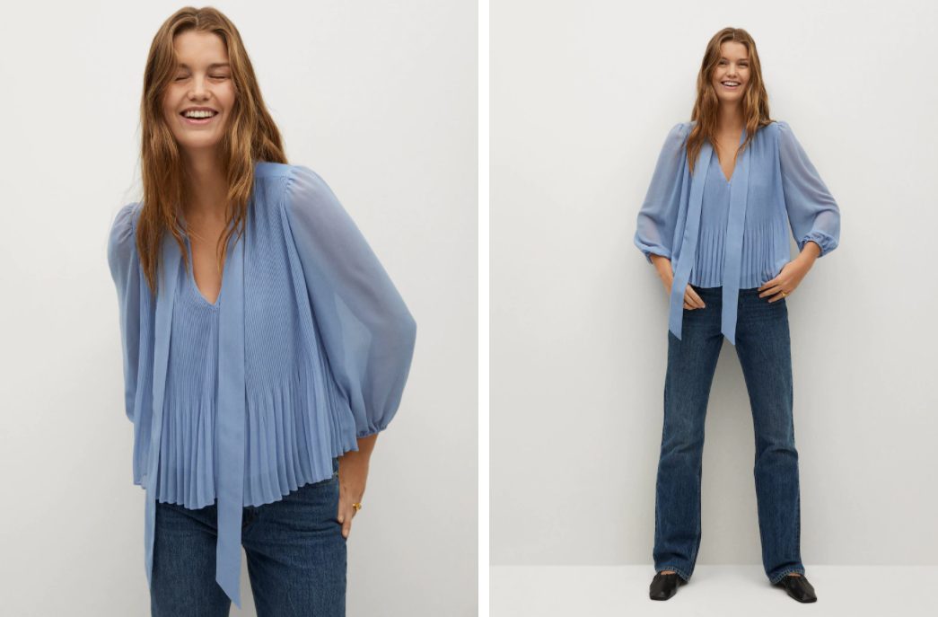 Al igual que el tejido en forma de panel, los plisados siguen encantándonos. Por eso, nos ha llamado tanto la atención esta blusa plisada de Mango que podemos encontrar en un bonito tono azul, que también nos recordará de forma inevitable a «Los Bridgerton».